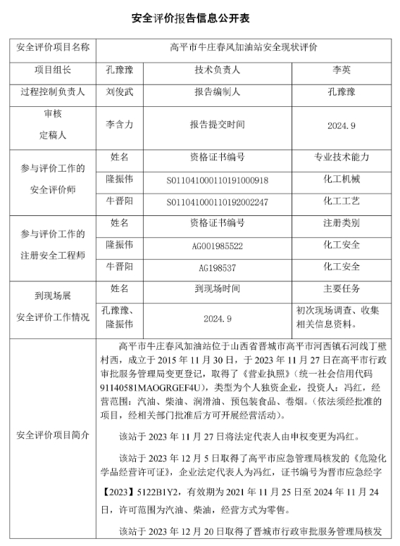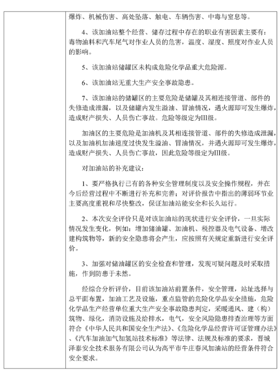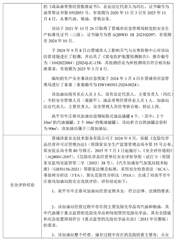 高平市牛莊春風(fēng)加油站安全現(xiàn)狀評價(jià)