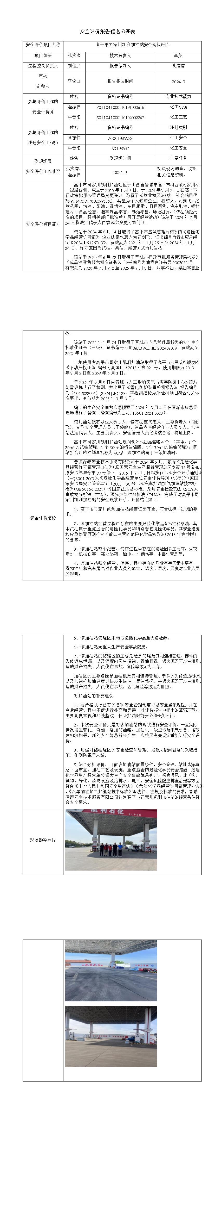 高平市司家川凱利加油站安全現(xiàn)狀評價