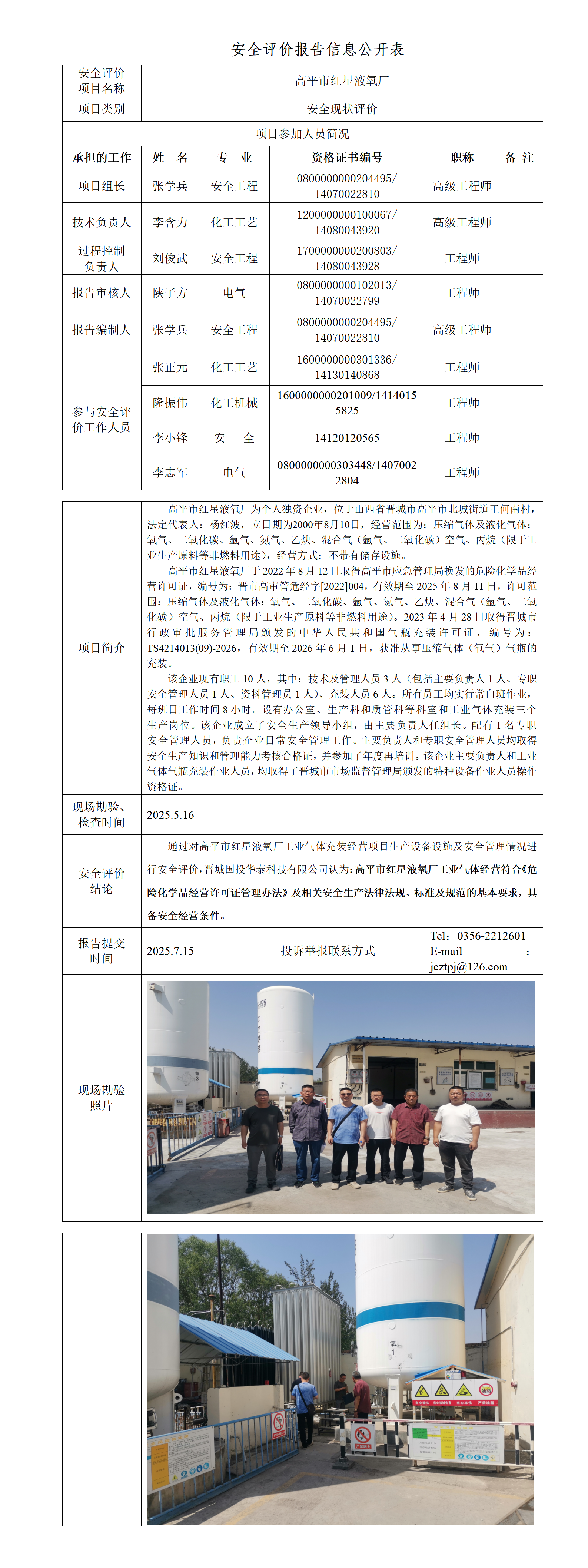 高平市紅星液氧廠安全現(xiàn)狀評價