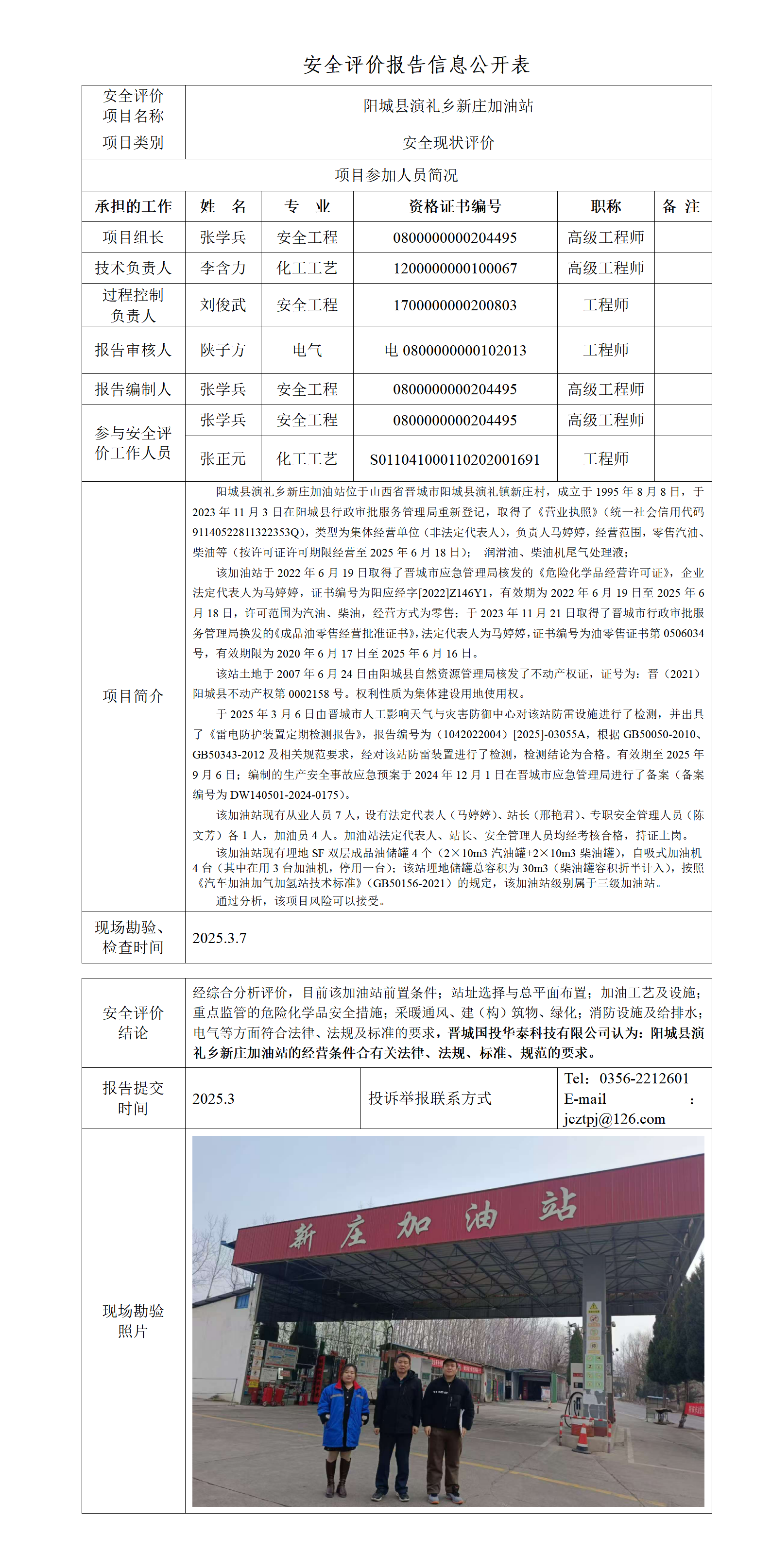 陽城縣演禮鄉(xiāng)新莊加油站安全現(xiàn)狀評價