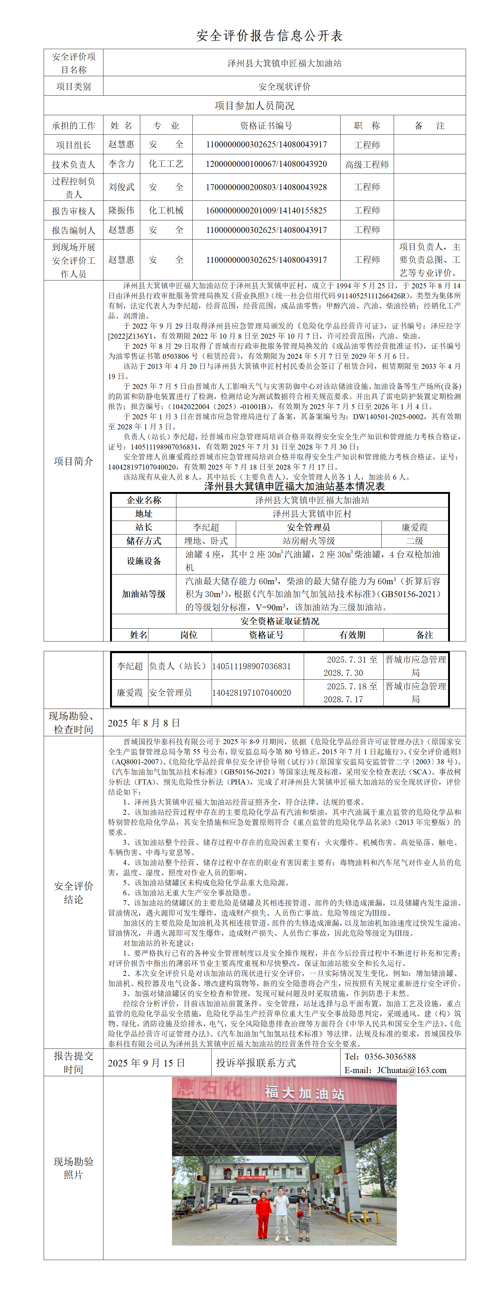 澤州縣大箕鎮(zhèn)申匠福大加油站安全現(xiàn)狀評(píng)價(jià)