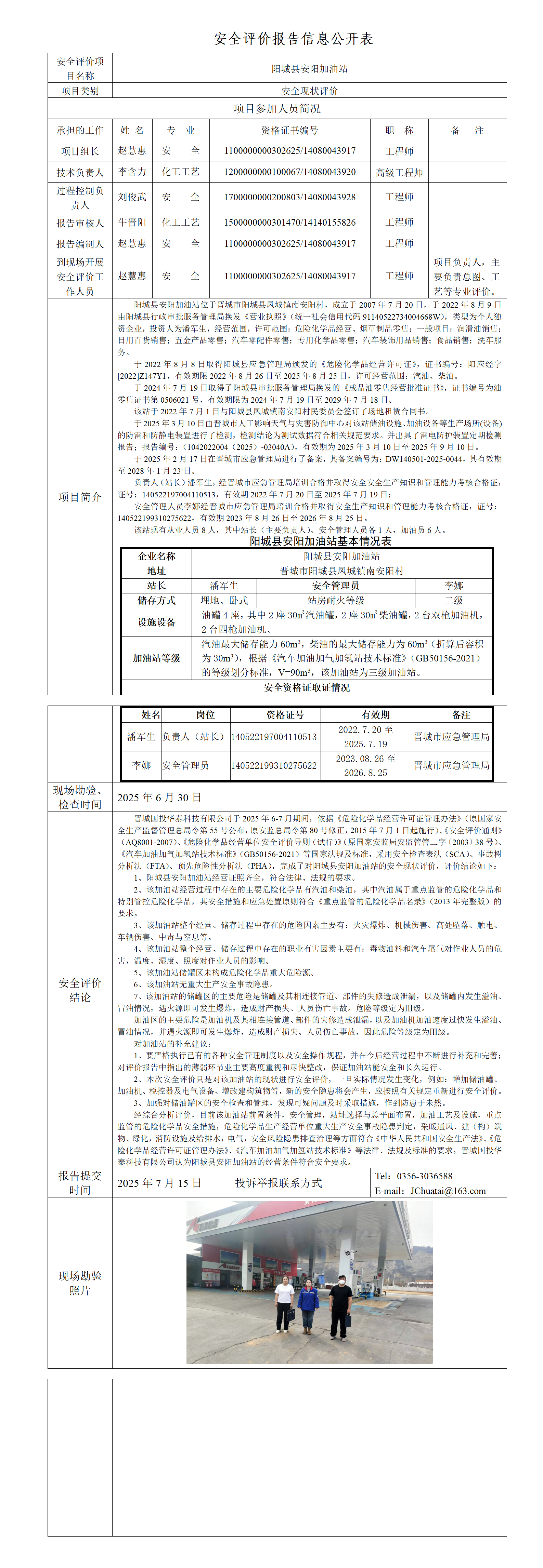 陽城縣安陽加油站安全現(xiàn)狀評價