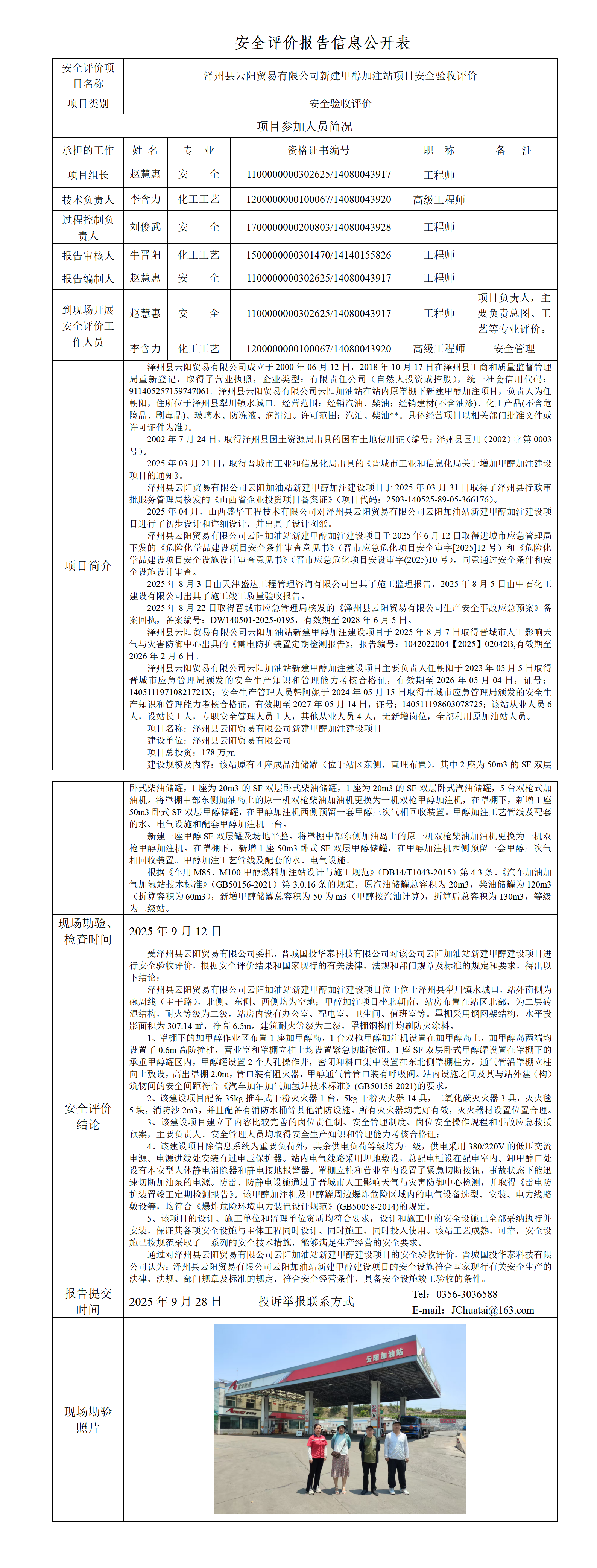 澤州縣云陽貿(mào)易有限公司新建甲醇加注站項(xiàng)目安全驗(yàn)收評價(jià)