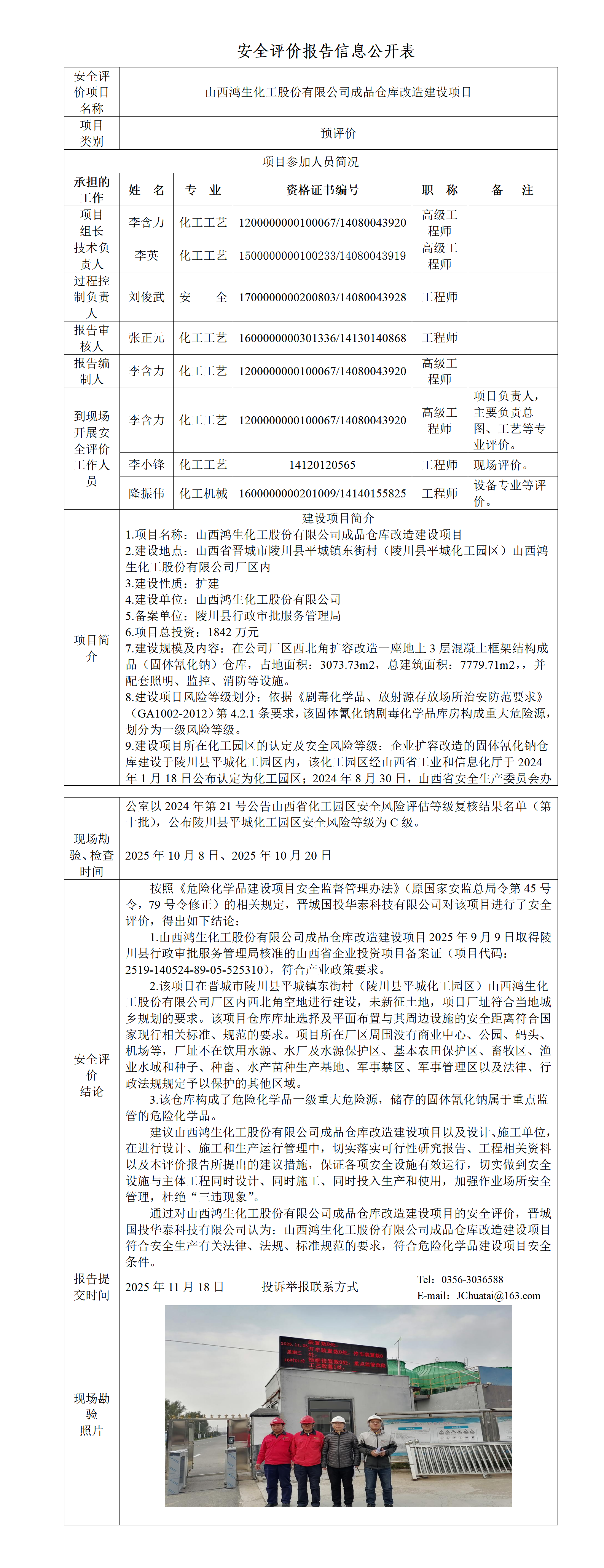 山西鴻生化工股份有限公司成品倉庫改造建設項目預評價